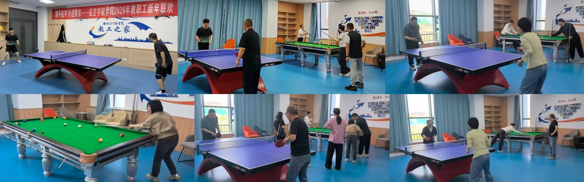 活动现场设有乒乓球、跳绳、台球等多项趣味比赛与自由体验项目,教职工们踊跃参与、各展身手,在运动中释放热情,活动现场气氛轻松活跃。大家纷纷表示,此次健身活动不仅有效放松了身心,也为后续参与元旦联欢会营造了良好状态,起到了“热身”与凝聚人心的积极作用。