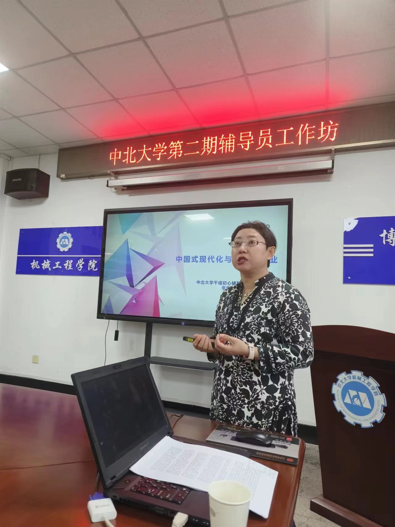 党委副书记李秀玲老师以“中国式现代化与高质量就业”为主题进行了分享。李书记从中国式现代化的学理,中国式现代化背景下高质量就业的意义,中国式现代化背景下高质量就业的指导路径三个方面进行了详细讲解了。她在报告中提到中国共产党是中国式现代化的核心要义,人民至上是中国式现代化的核心价值理念,社会主义现代化是中国式现代化的本质属性,大学生作为就业场域中的重点培养对象和生力军,作为一名辅导员要引导大学生挺身而出,担当大任,要结合二十大报告精神,帮助学生做好行业选择、地域选择、单位选择,为了助推中北高质量就业,开展就业育人主题教育活动,全面加强就业指导,深入推进就业育人,建设高质量就业服务体系,通过李秀玲老师的领学,各位辅导员们感受颇深,收获颇丰。