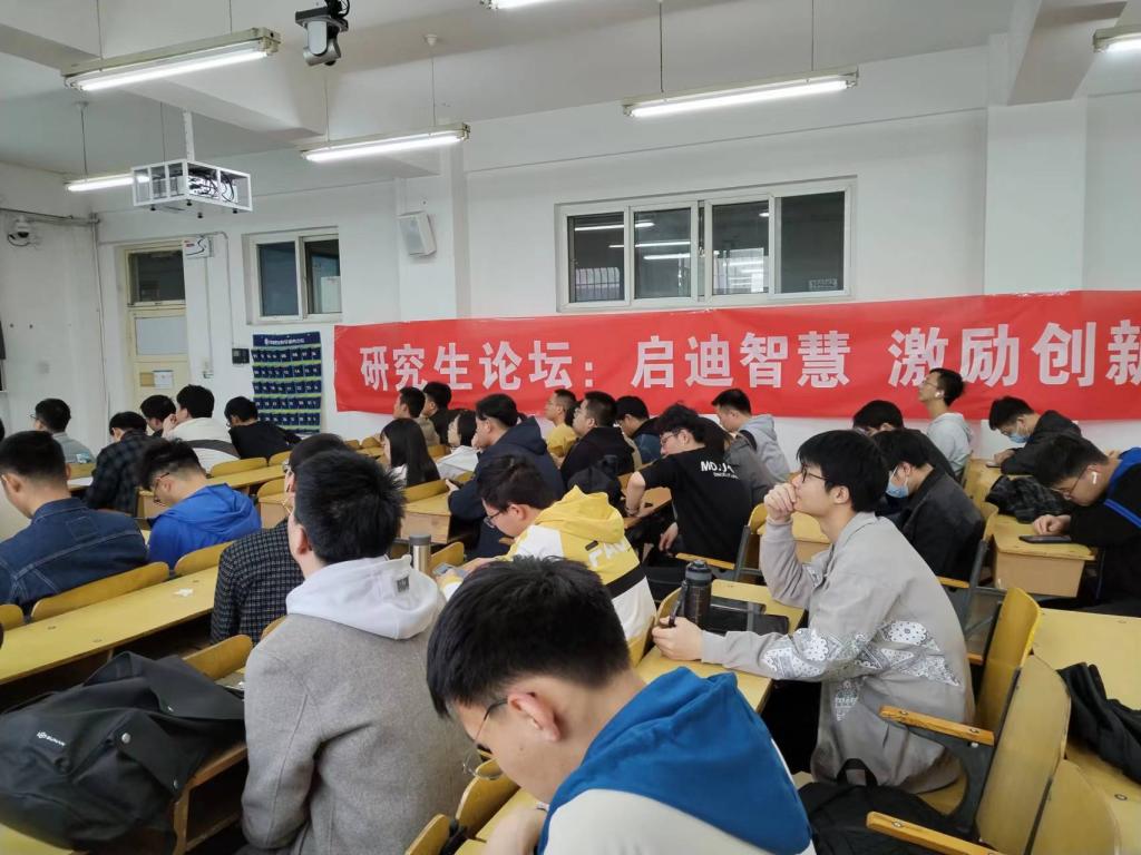 在10号楼407教室举办了以“启迪智慧 激励创新”为主题的研究生论坛。参加本次论坛的有辅导员李国平老师,苗雨中、周艺、郑翔和谭晓丽四位优秀学长到会分享了经验,并与参会的研究生进行了交流互动。