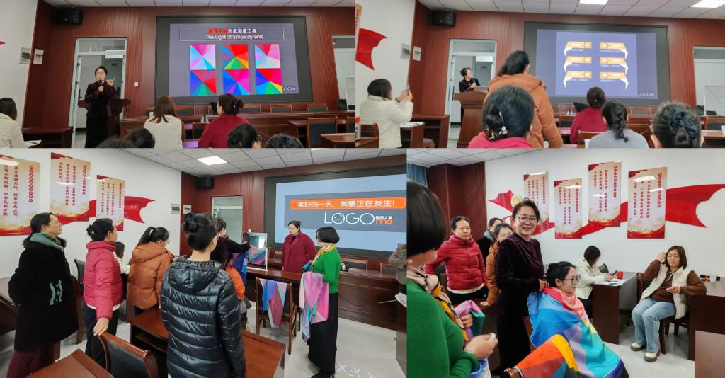 培训邀请丁燕老师讲师授课,她以“logo me 极简之美”为题,首先从深色或浅色、冷色或暖色、艳色或浊色三个方面给大家讲解了衣服颜色的搭配,接着通过用专用丝巾实际筛选自己的基本色,最后从自我认知的提升角度和现场演示,指导大家挑选衣服颜色、凸显自身特点的logo色,从而完成自己丽质形象的塑造工作。