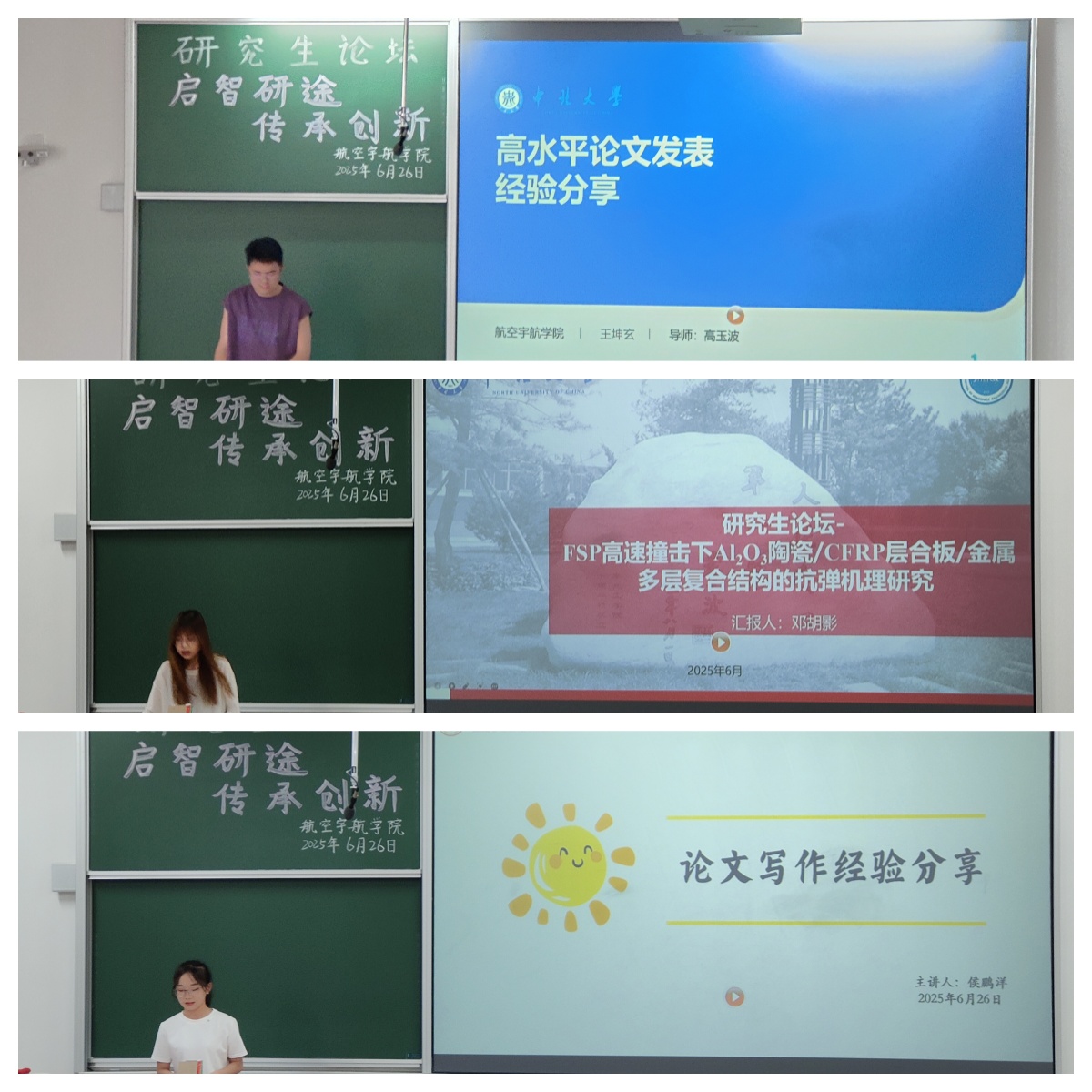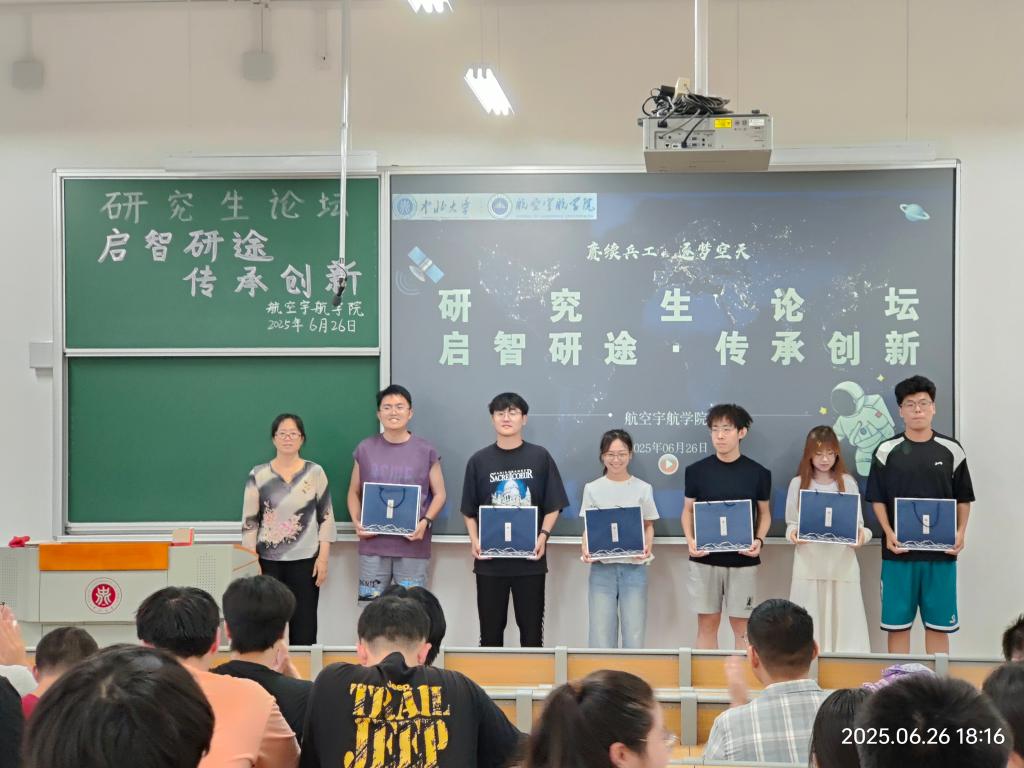 2025年6月26日下午,航空宇航体育赛事 研究生会于17102H教室成功举办2025年第二次研究生论坛。本次论坛以“启智研途·传承创新”为主题,聚焦研究生科研创新活力,营造浓厚学术氛围。论坛邀请6位优秀研究生,分别围绕高水平论文写作、科技创新竞赛等方向展开深度经验交流,辅导员李国平老师作为特邀嘉宾到场。