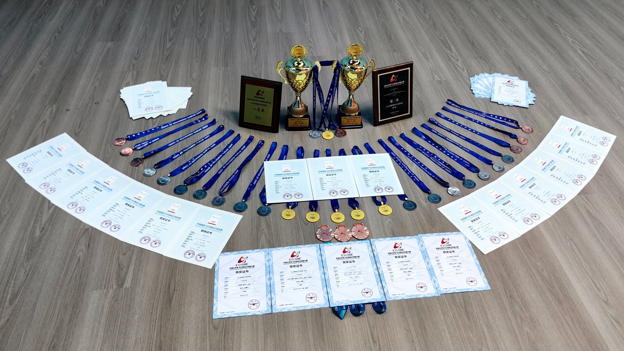 航模队在2025年中国大学生飞行器设计创新大赛中获得一等奖1项,三等奖2项,团体第二名1项。