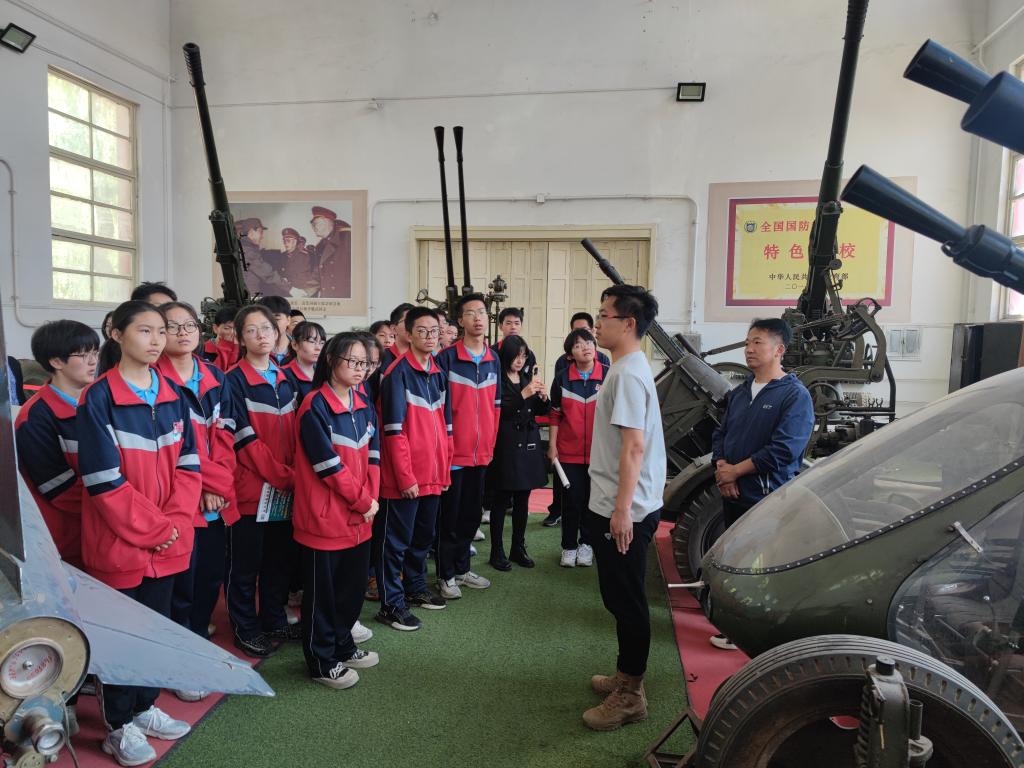 火炮库作为重要的兵工发展科普基地,陈列着各类火炮武器,志愿者们以高中生知识结构为基础形象生动地为大家讲述每种火炮的名字特性、作用效果及背后的故事,激励鼓舞了在场的每一位听众。大家从讲解中了解了中国共产党领导下的兵工事业从无到有、从少到多、从弱到强的迭代发展过程。爱国强国的种子在每一位学生的心底生根发芽。