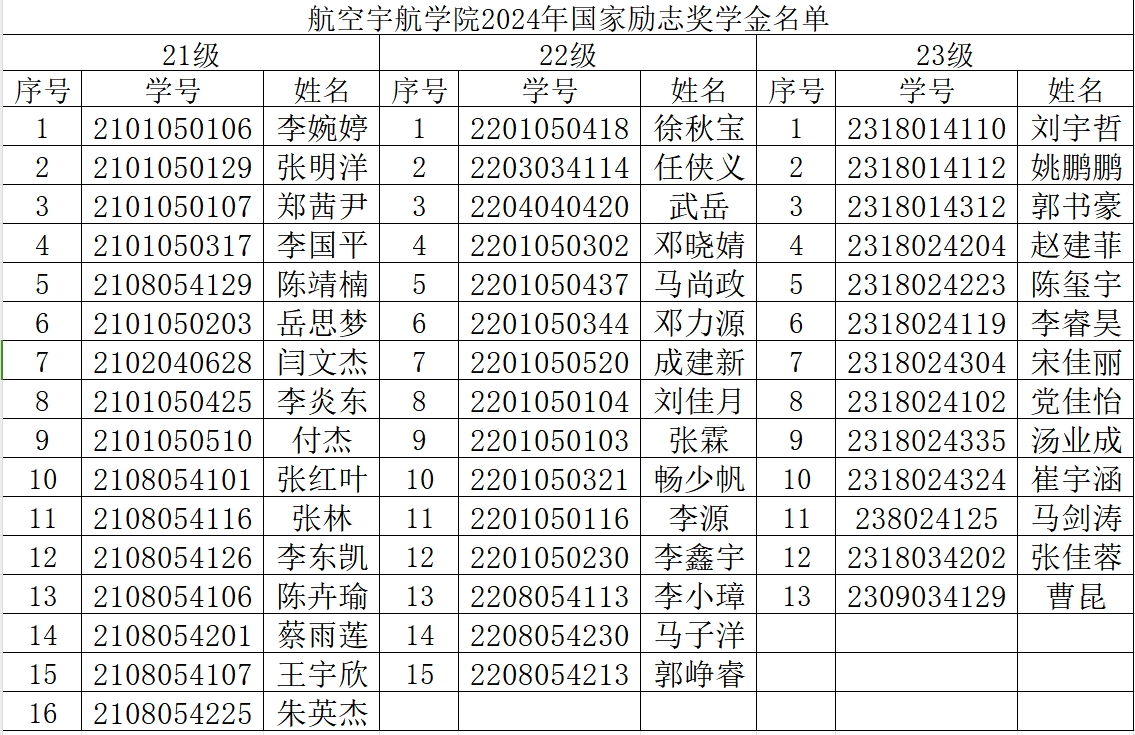 本科生国家奖学金、国家励志奖学金、国家助学金评审办法(修订版)》(校学〔2024〕53号)和《航空宇航体育赛事